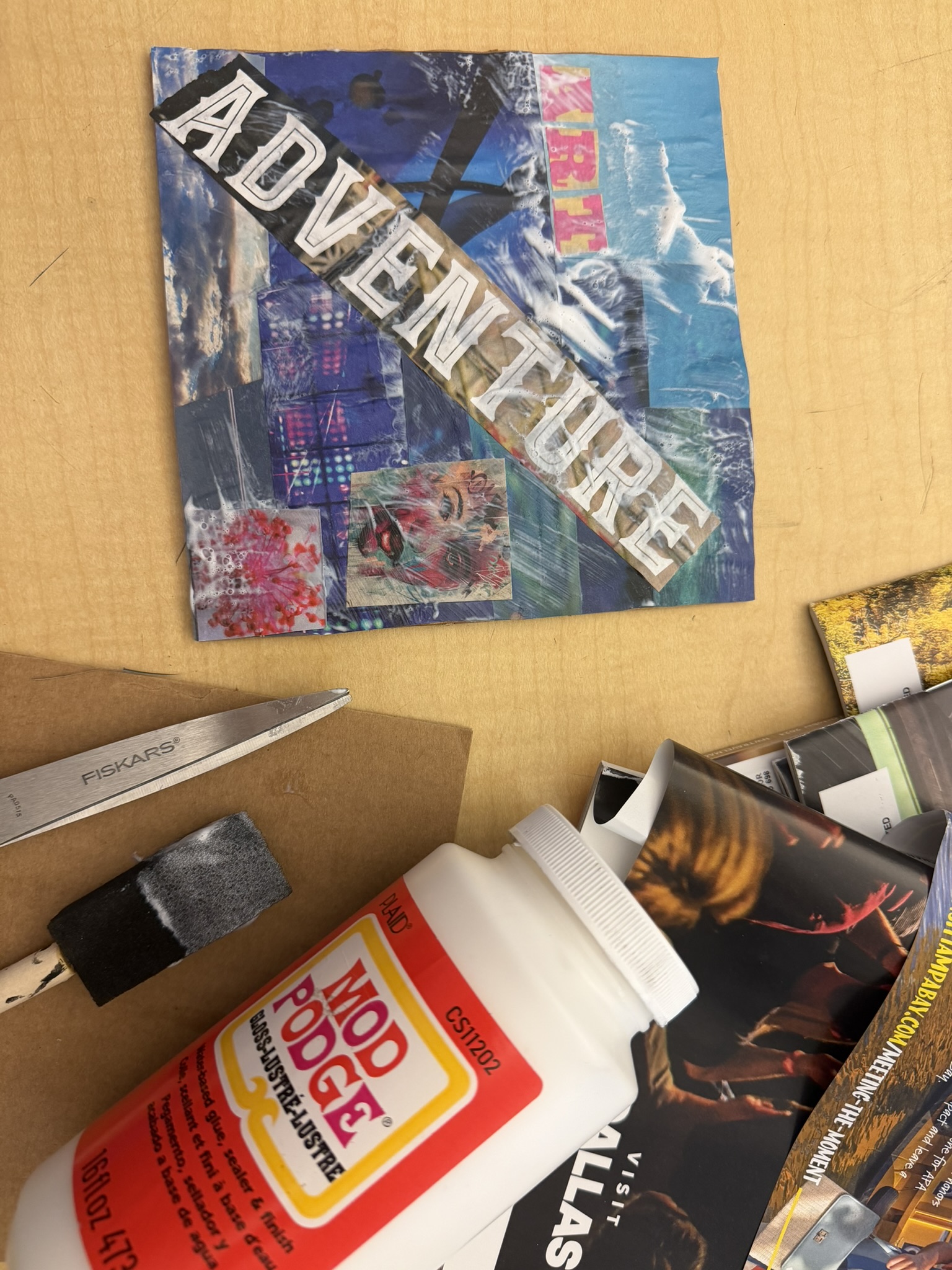 January’s art and exhibition pull from Gossip: Between Us.Our project will be making art journals using Mod Podge, magazines, and stickers.